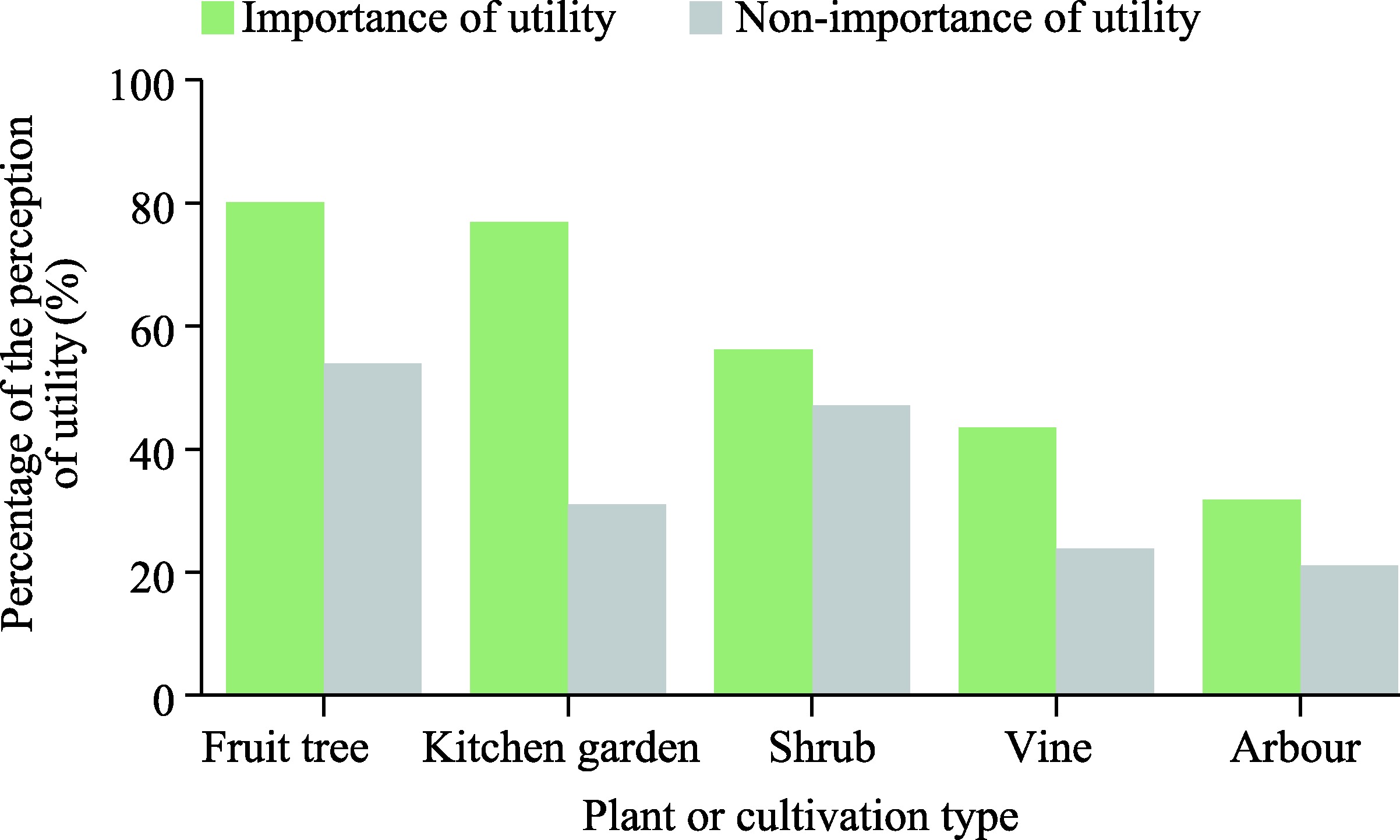 Fig. 7. Percentage of the perception of utility of the plants or cultivation types in green spaces. |
