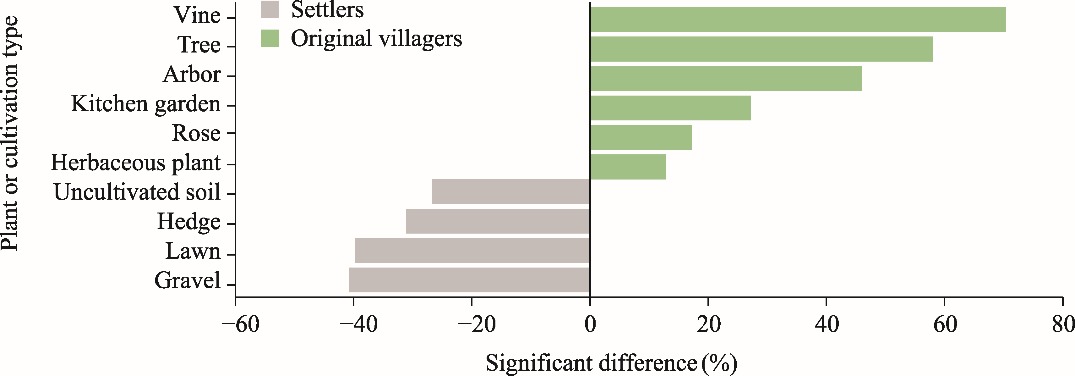 Fig. 8. Differences in plants or cultivation types between original villagers and settlers. |