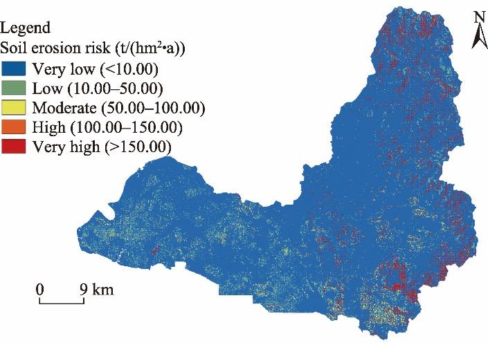Fig. 3. Spatial distribution of soil erosion risk in the study area. |