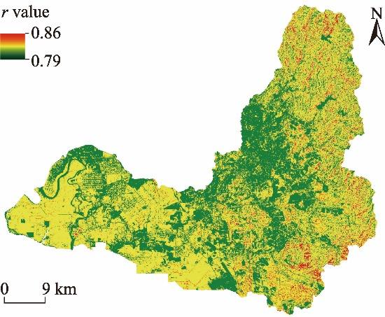 Fig. 4. Spatial correlation between drought and soil erosion. r is the Pearson correlation coefficient. |