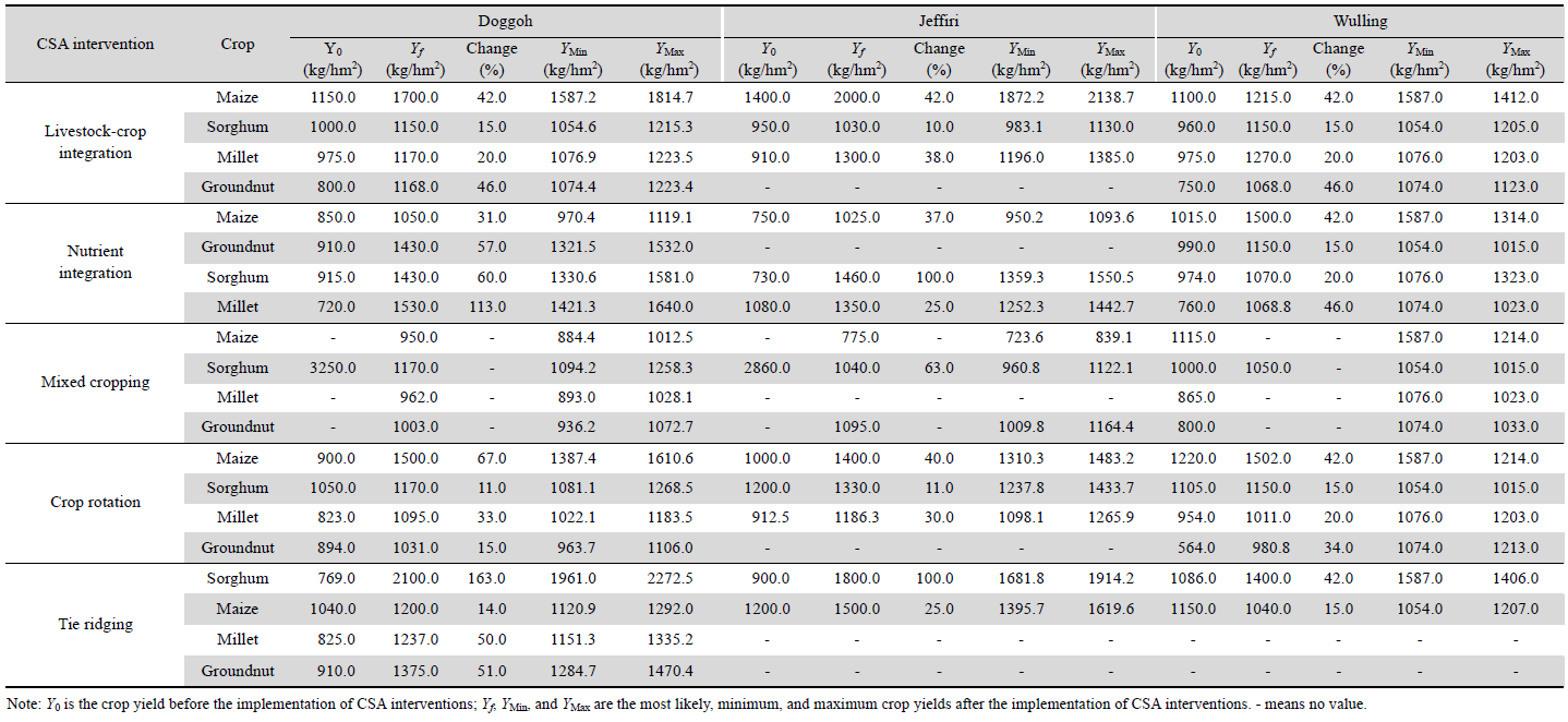 Table 3 Different crop yields after the implementation of CSA interventions in the three villages. |