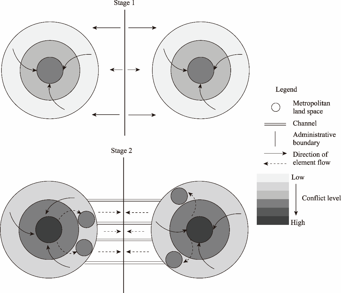 Land use conflicts (LUCs), as a spatial manifestation of the conflicts in the human-land relationships, have a profound impact on regional sustainable development. For China’s metropolitan junction areas (MJAs), the existence of “administrative district economies” has made the issue of LUCs more prominent. Based on a case study of the central Chengdu-Chongqing region, we conducted an exploratory spatial data analysis of the evolutionary process of regional LUCs. Furthermore, structural equation modeling was utilized to analyze the dynamic mechanism of LUCs in MJAs, with a particular emphasis on exploring the influences of administrative boundary. The results showed that from 2010 to 2020, LUCs in the central Chengdu-Chongqing region continued to worsen, and the spatial process conflict and spatial structure conflict indices increased by more than 30.0%. The intensification of LUCs in the central Chengdu-Chongqing region from 2010 to 2020 was mainly the result of the deterioration of conflicts in evaluation units with low conflict levels. LUCs in China’s metropolitan areas generally presented a circular gradient distribution, weakening from the core to the periphery, but there were some strong isolated conflict zones in the outer regions. LUCs in China’s MJAs were the result of interactions among multiple factors, e.g., natural environment, socio-economic development, policy and institutional processes, and administrative boundary effects. Administrative boundary affected the flow of socio-economic elements, changing the supply-and-demand competition of stakeholders for land resources, consequently exerting an indirect influence on LUCs. This study advances the theory of the dynamic mechanism of LUCs, and provides theoretical support for the governance of these conflicts in transboundary areas.