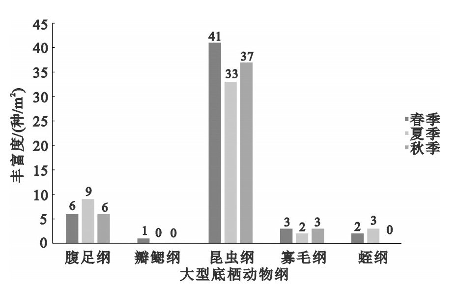 2 不同季节大型底栖动物生物多样性指数方差分析Analysis of variance of macroinvertebrates biodiversity indices in different seasons |