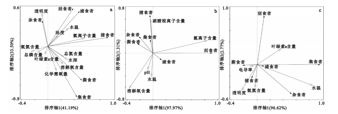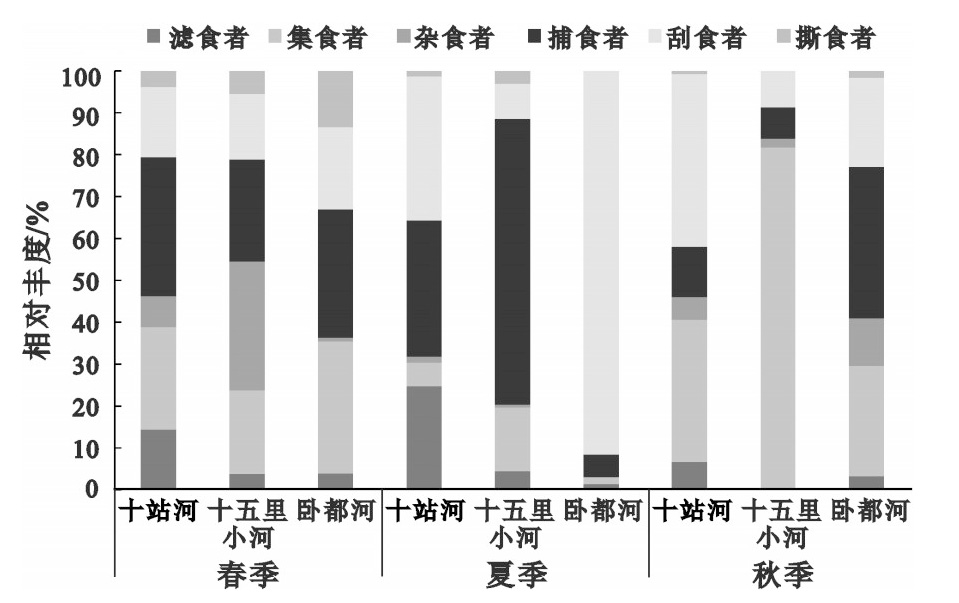 为了探究中央站黑嘴松鸡国家级自然保护区大型底栖动物群落结构及其优势物种生态位特点,在保护区3条主要入嫩江河流(十站河、十五里小河和卧都河),共设置了19个采样点,于2022年春季、夏季和秋季,进行了大型底栖动物样本采集和水质理化因子监测;利用Shannon-Wiener指数和Pianka重叠指数,对大型底栖动物优势物种进行了生态位分析;采用冗余分析和非度量多维尺度分析方法,分析了大型底栖动物摄食功能群与水体理化因子的关系及不同河流群落间差异性。研究结果表明,在19个采样点的样品中,共鉴定出大型底栖动物94种(属),隶属于3门5纲15目46科,大型底栖动物群落物种丰富度和摄食功能群存在季节差异,而其Shannon-Wiener指数、Margalef指数和Pielou指数的季节差异不显著;十站河、十五里小河和卧都河大型底栖动物优势物种分别有10种、6种和3种,都属于窄生态位种,其中,前突摇蚊属一种(Procladius sp.)为3条河流共有的优势物种;十站河和十五里小河各优势物种之间的生态位重叠值比较宽泛,卧都河生态位重叠值较集中;影响大型底栖动物摄食功能群的主要水质理化因子为硝酸根离子含量、透明度、水温、pH和溶解氧含量;非度量多维尺度结果显示,3条入江河流大型底栖动物群落结构具有较高的相似性。