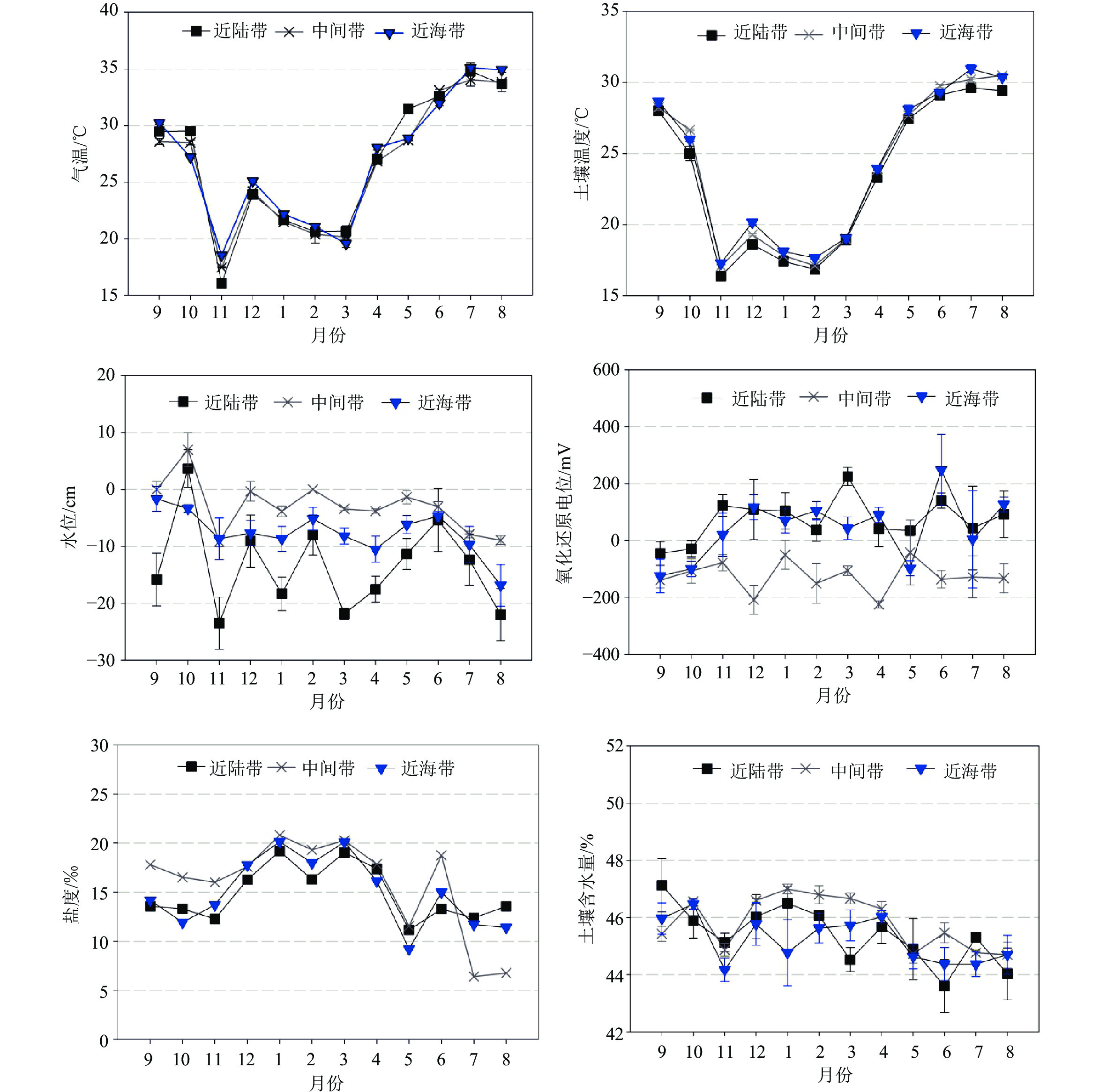 1 Spatial and seasonal variations of environmental factors and soil nutrients in Mai Po mangrove wetland, Hong Kong香港米埔红树林湿地环境因子和土壤养分的空间和季节差异 |