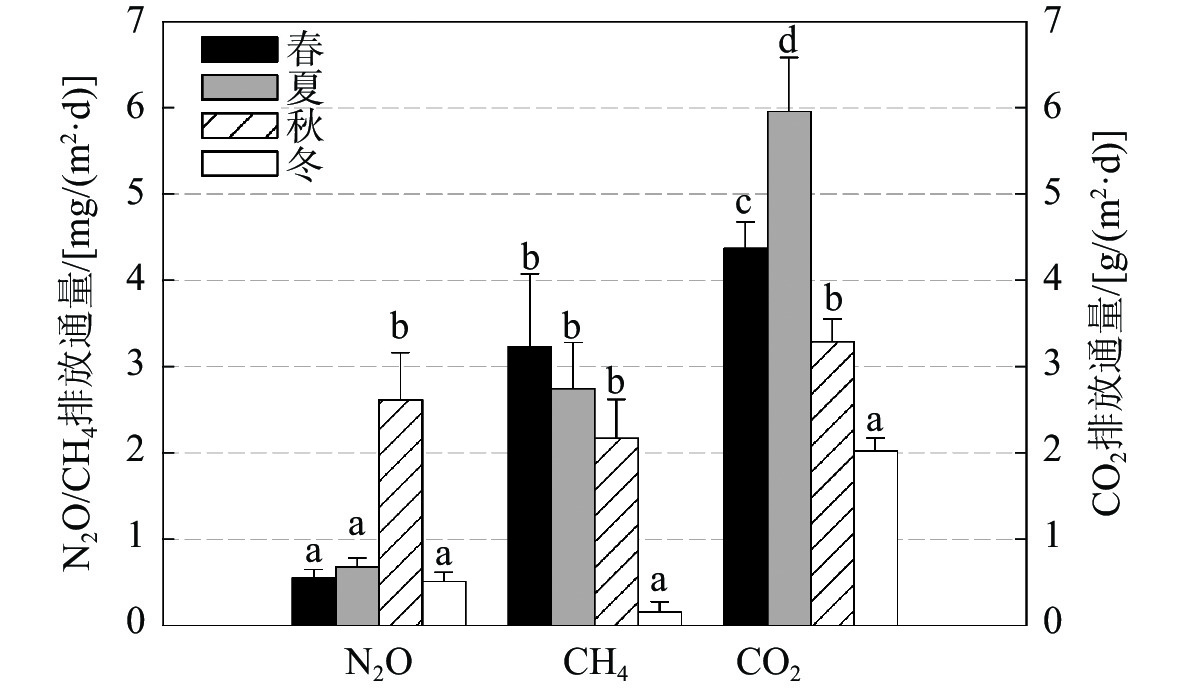 4 Mean values of soil greenhouse gas fluxes at different seasons in Mai Po mangrove wetland, Hong Kong香港米埔红树林湿地温室气体排放通量在不同季节的平均值 n=27,p<0.05)。]]> |