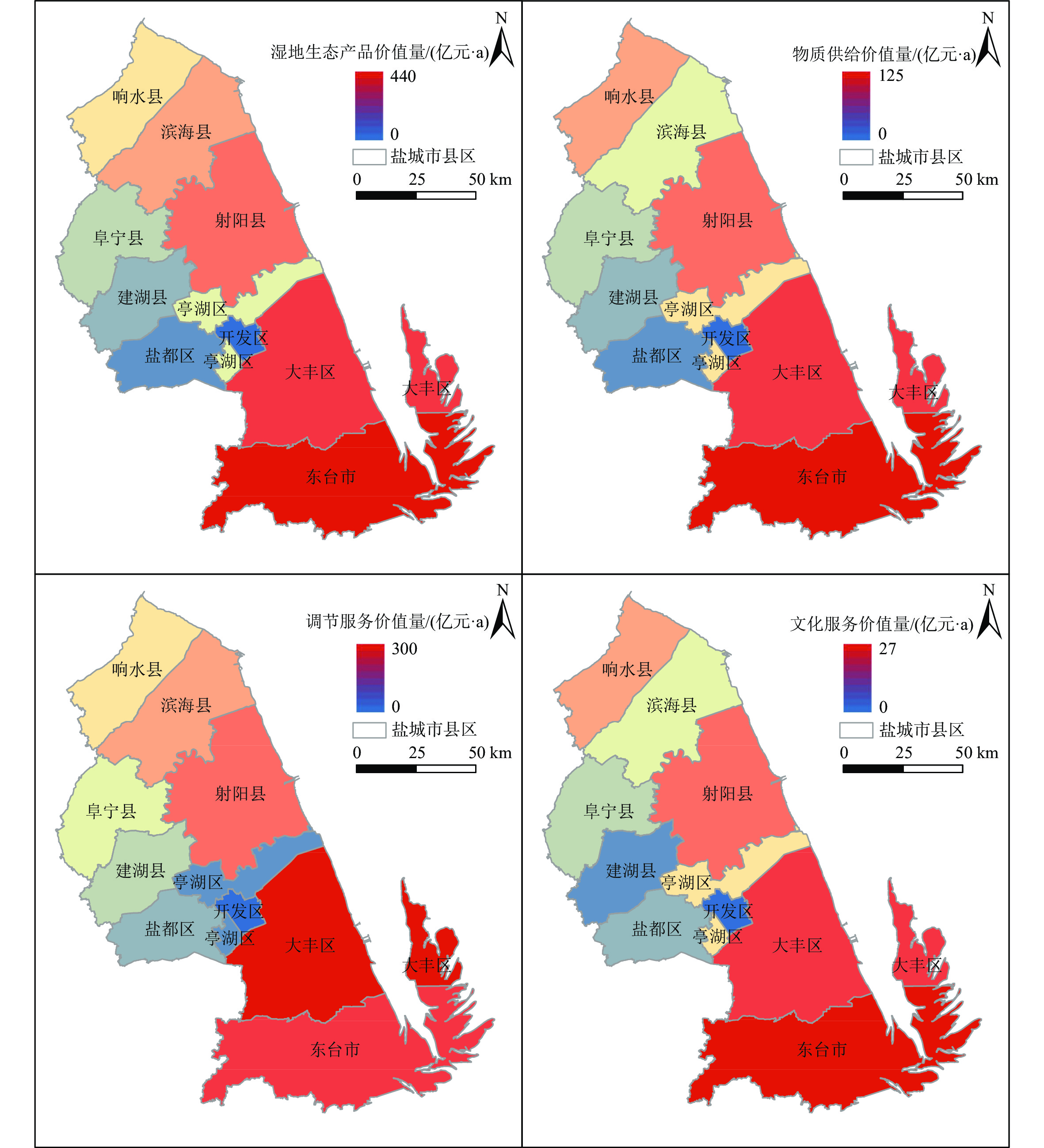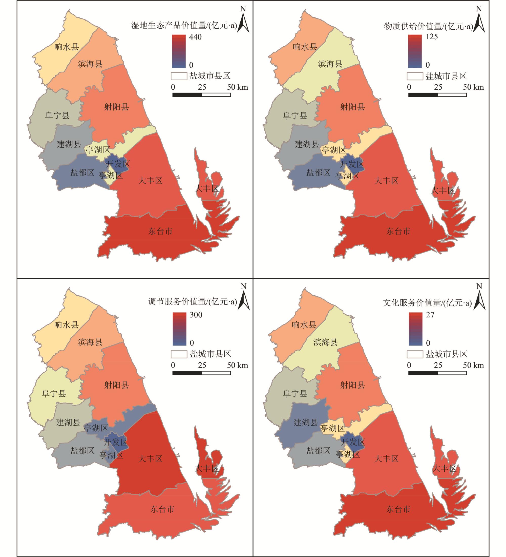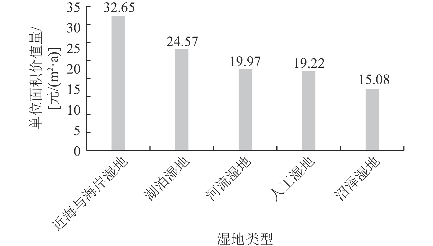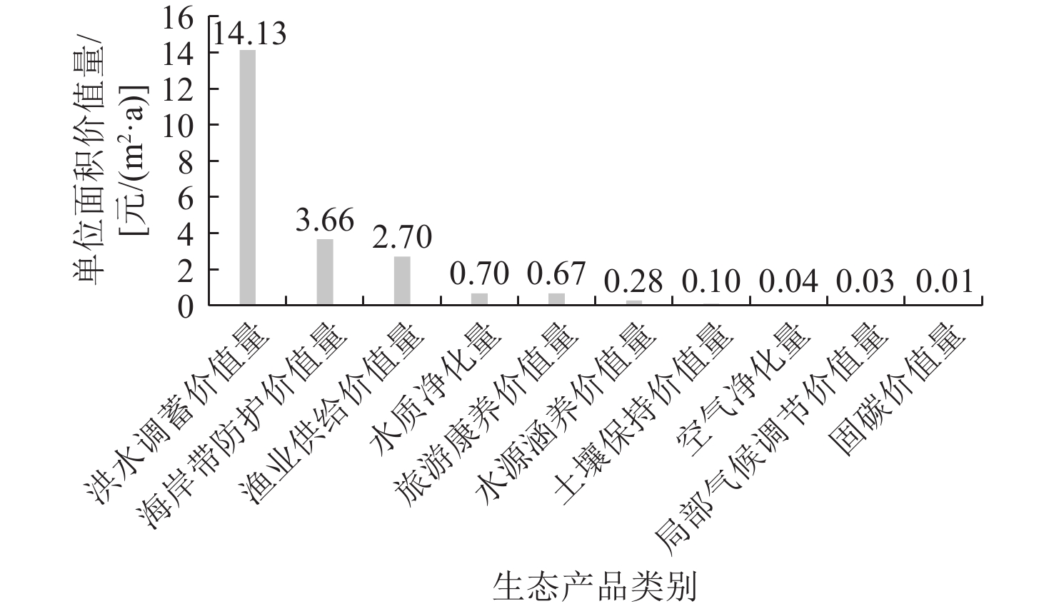 为了探究现行湿地“占补平衡”政策以及该政策对区域范围内湿地生态功能的生态盈亏作用,通过生态产品价值核算方法,对2022年盐城市不同类型湿地单位面积内湿地生态产品价值量进行核算评估。研究结果表明,盐城市近海与海岸湿地、沼泽湿地、河流湿地、湖泊湿地、人工湿地5种湿地类型的总面积为5 678.36 km2;2022年盐城市湿地生态产品价值量为1 400.94亿元,其中物质供给类生态产品价值为266.32亿元,调节服务类生态产品价值为1 075.76亿元,文化服务类生态产品价值为58.86亿元;盐城市单位面积内湿地生态产品价值量平均值为22.30元/(m2·a),不同类型湿地生态产品价值量从大到小依次为近海与海岸湿地[32.65 元/(m2·a)]、湖泊湿地[24.57 元/(m2·a)]、河流湿地[19.97 元/(m2·a)]、人工湿地[19.22 元/(m2·a)]、沼泽湿地[15.08 元/(m2·a)],并以洪水调蓄生态产品价值量最高[14.13 元/(m2·a)],固碳生态产品价值量最低[0.01 元/(m2·a)],其中近海与海岸湿地具有独特的海岸带防护价值。不同湿地类型具有不同的生态产品价值量和功能,建议在不同湿地类型之间开展“占补平衡”工作时,可将近海与海岸湿地、湖泊湿地、河流湿地、人工湿地、沼泽湿地的面积比,设定为1.00∶1.33∶1.63∶1.70∶2.17,进行占补面积的简易等效换算,从而实现区域生态产品价值的零净损失。