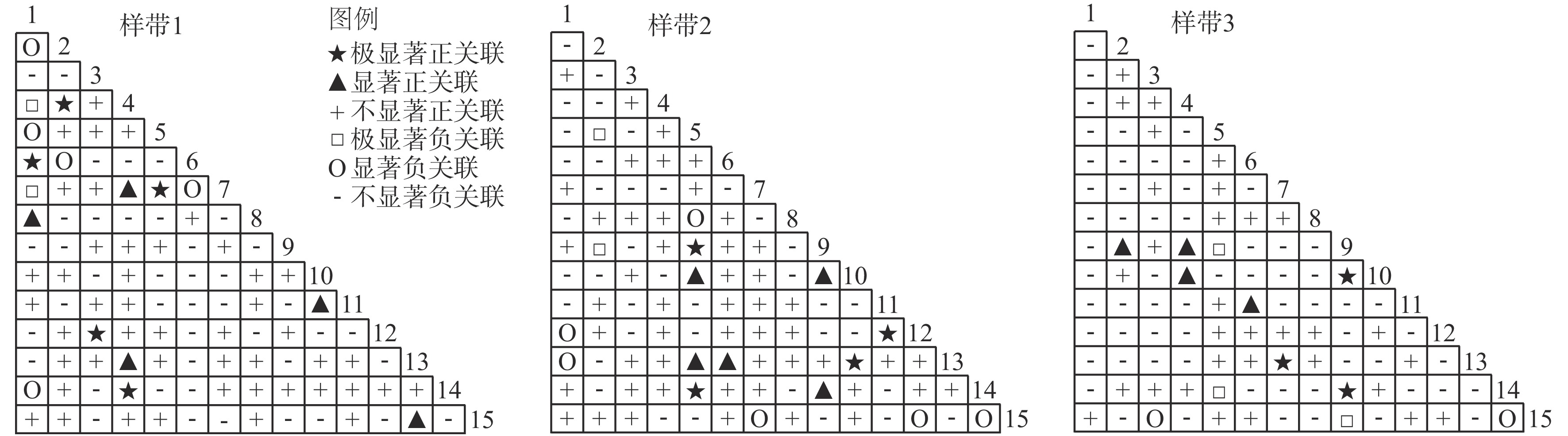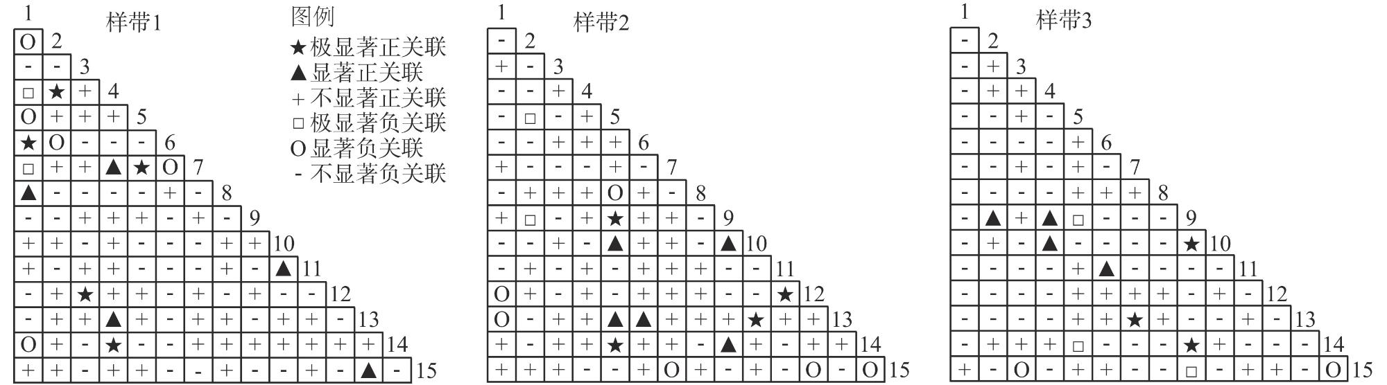 | 样带 | 检验方法 | 正关联 | 负关联 | |||||||