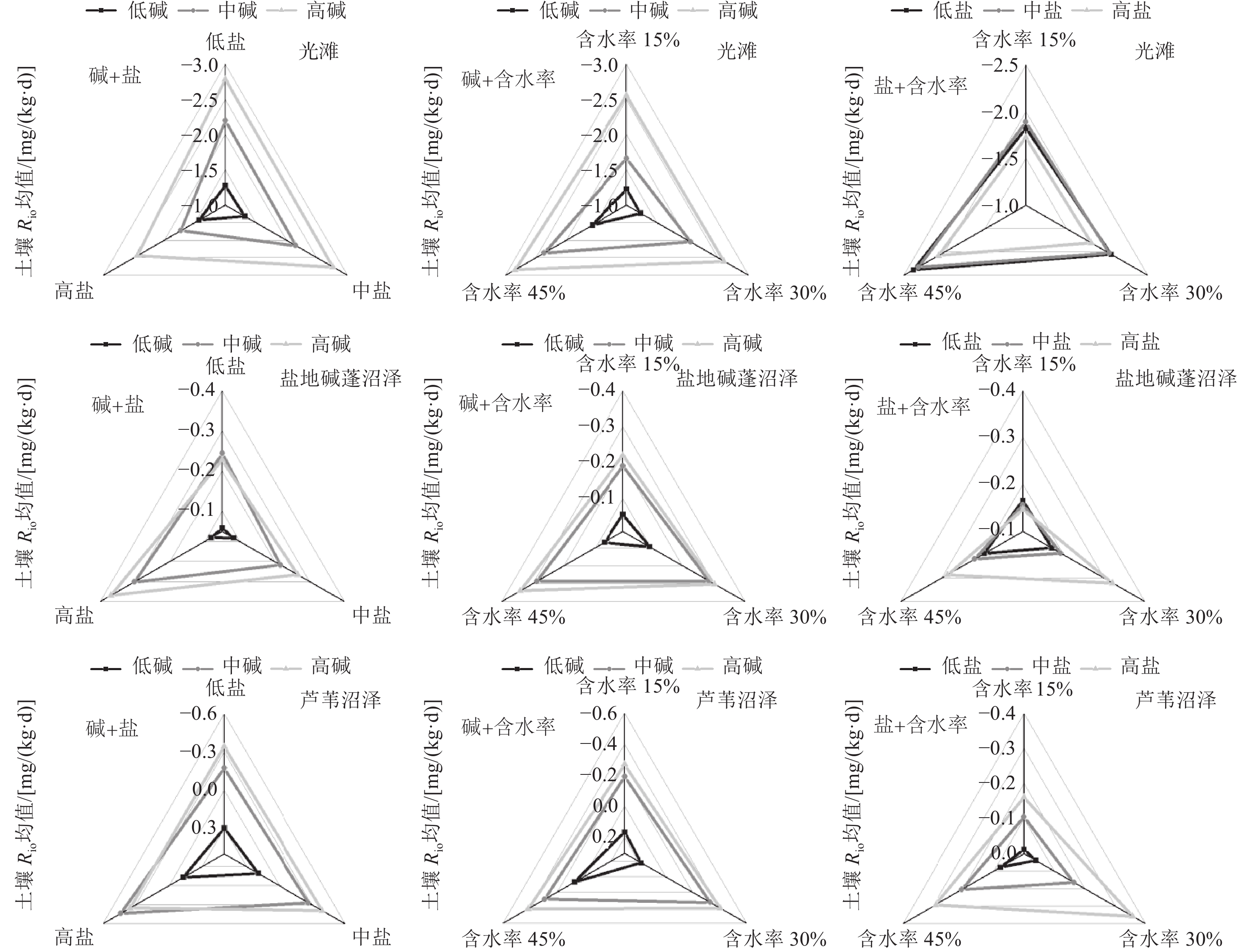 | 高碱 | 低盐 | 10.00~10.41 | 1.30~4.06 | 5.50~7.77 | 33.23~18.59 | 0.90~5.60 | 0.04~1.04 | 0.05~2.40 | 0.67~1.14 | 0.77~4.29 | 0.33~0.71 | 1.41~2.09 |