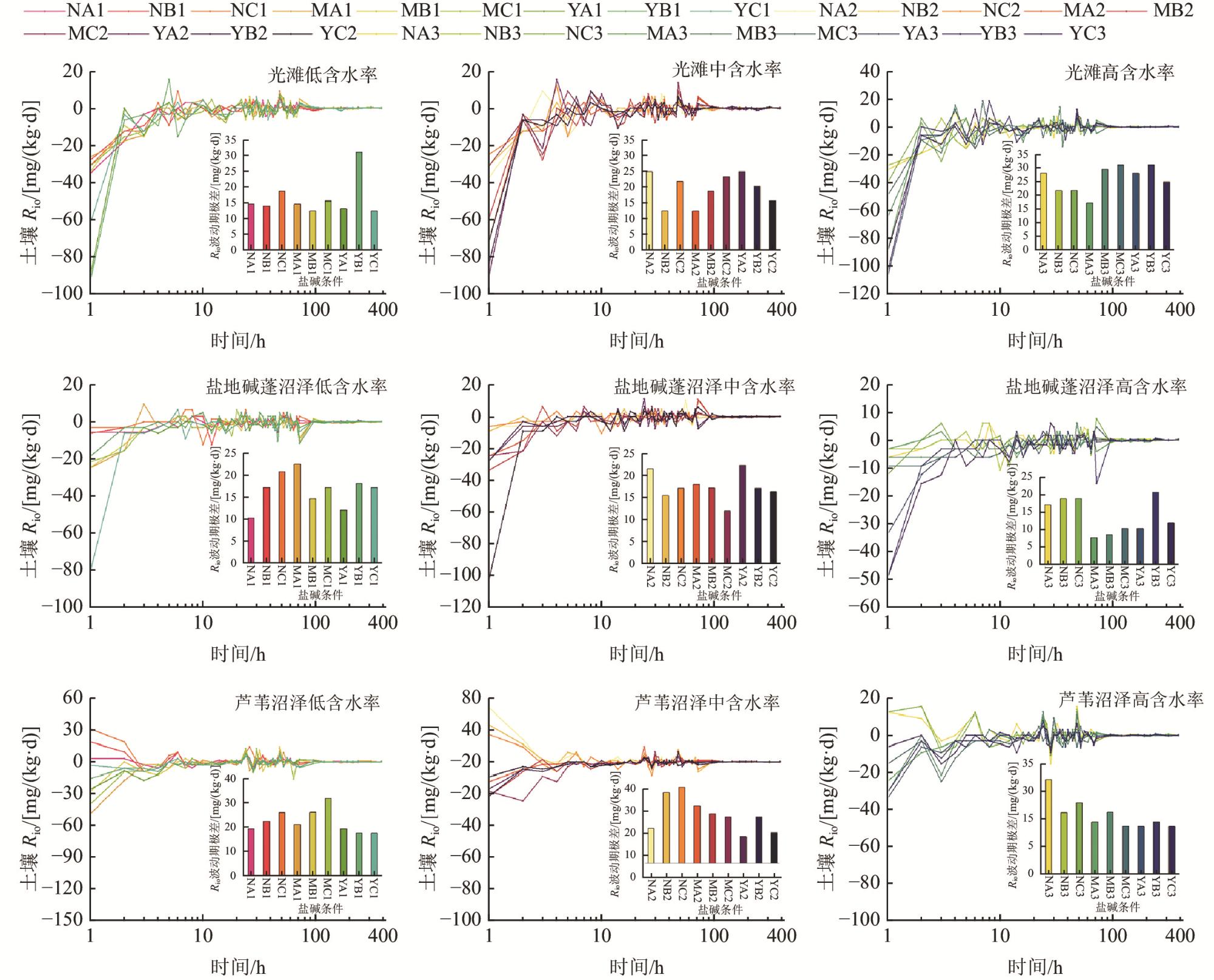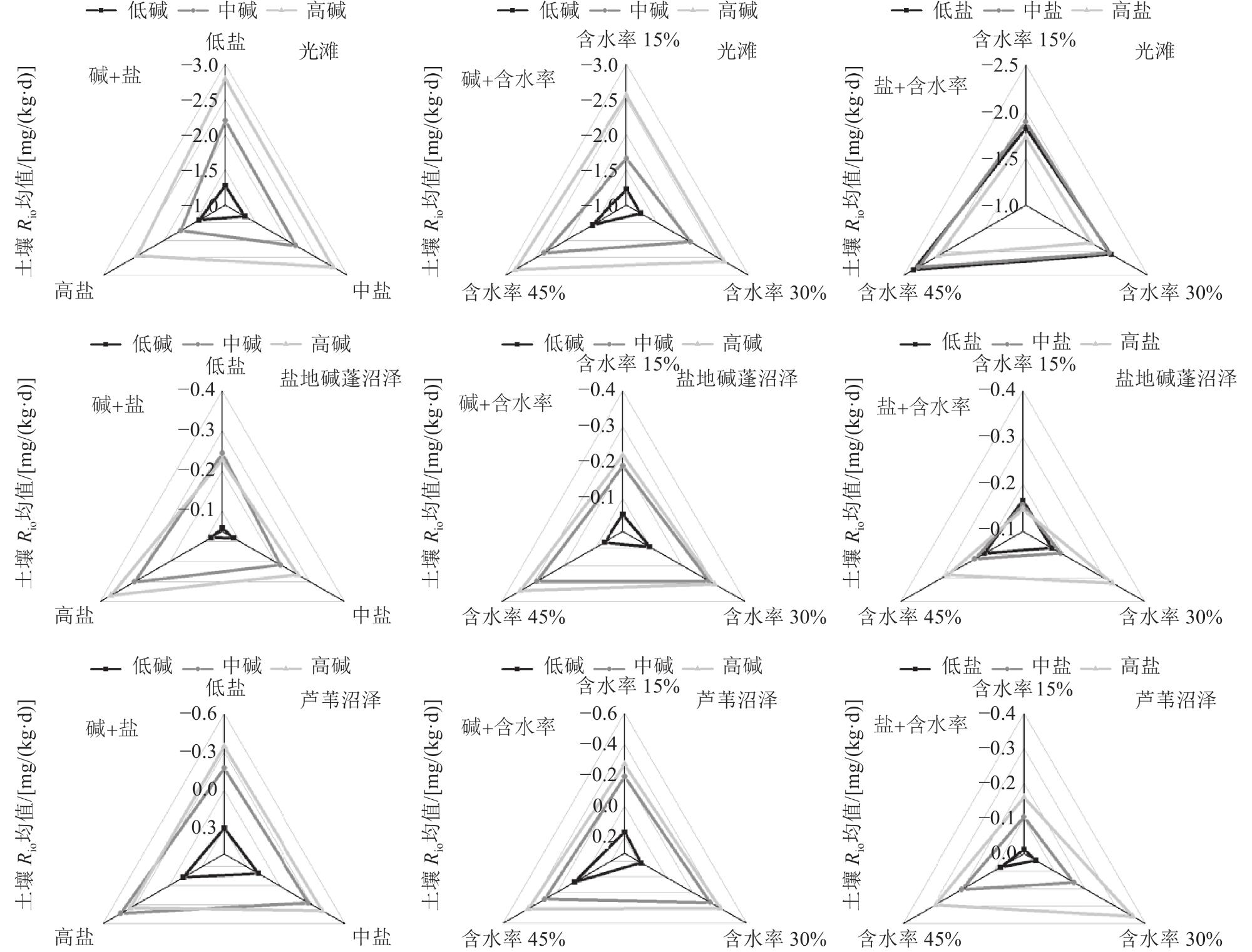 | 盐碱条件 | pH | 电导率/ (mS/cm) | 全盐 质量比/ (g/kg) | 土壤无机碳 质量比/ (g/kg) | 土壤有机碳 质量比/ (g/kg) | Ca2+ 质量比/ (g/kg) | Mg2+ 质量比/ (g/kg) | 质量比/ (g/kg) | 质量比/ (g/kg) | 土壤全氮 质量比/ (g/kg) | 土壤容重/ (g/cm3) | |
