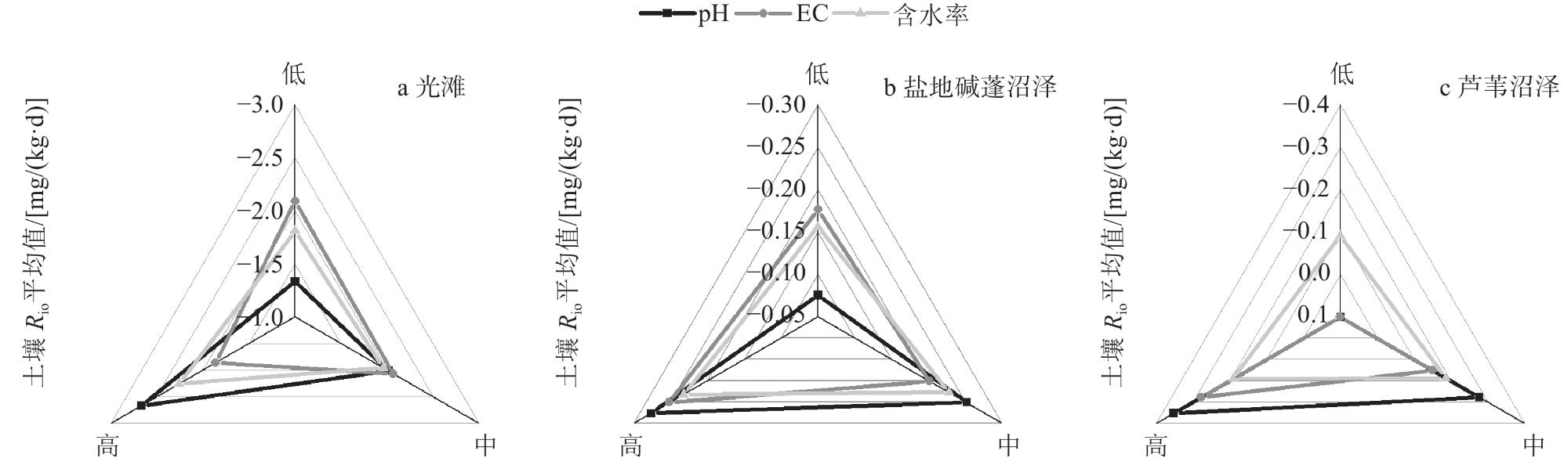 To explore the characteristics of inorganic CO2 flux (Rio) in coastal wetland soil and the inorganic absorption mechanism of CO2 in soil, soils from three representative wetland types of mudflat, Suaeda salsa marsh, and Phragmites australis marsh in Jiaozhou Bay were collected. Based on the laboratory-controlled experiments, the characteristics of soil Rio were analyzed. The main influencing factors of Rio and their interactions were identified through the construction of a multifactor factorial model. In addition, the distribution of the absorbed CO2 in wetland soil was clarified by isotope tracer technology. Results showed that the CO2 absorption process existed in different types of soils in Jiaozhou Bay coastal wetland and the difference of Rio was significant, with the specific order of Phragmites australis marsh (average Rio of −0.171 mg/(kg·d)), Suaeda salsa marsh (average Rio of −0.230 mg/(kg·d)), mudflat (average Rio of −0.274 mg/(kg·d)). The soil Rio was negatively correlated with pH (r=0.82, p<0.05). Results of multifactor factorial model showed that the pH was the most significant influence for soil Rio in coastal wetland, and the interaction between pH and EC was the most intense. The 13C isotope tracer showed that the absorbed CO2 was converted into soil dissolved inorganic carbon and soil inorganic carbon. In addition, within 1 - 24 h of the reaction, about 10% of dissolved inorganic carbon in the soil was converted to soil inorganic carbon, fixed directly into the soil in a solid form.