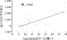 5A级和4A级景区的数量与途经旅游节点次数散点图